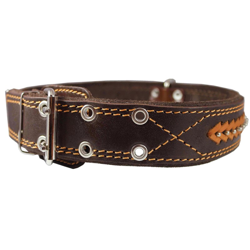 Genuine Leather Braided Studded Dog Collar, Brown 1.75" Wide. Fits 22"-27" Neck.