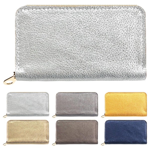 Genuine Leather Coin Case, Round Zipper, Cowhide Pouch, Case, Mini Wallet, Coin Purse, Compact, Simple, Leather, Luxury, Glitter, Silver