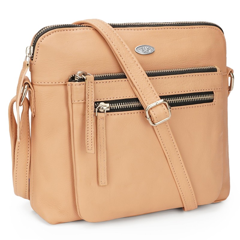 Genuine Leather Crossbody Bags for Women, Cross-Shoulder Purses with Adjustable Strap and Triple Zipper, Swanky - Peach