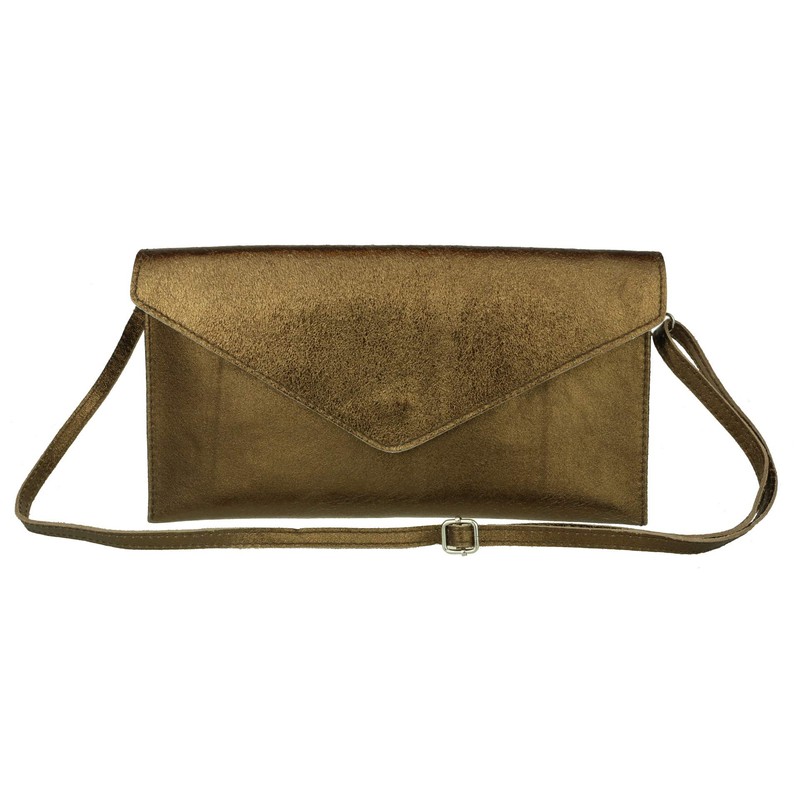 Genuine Leather Italian Metallic Envelope Clutch Bag - Copper