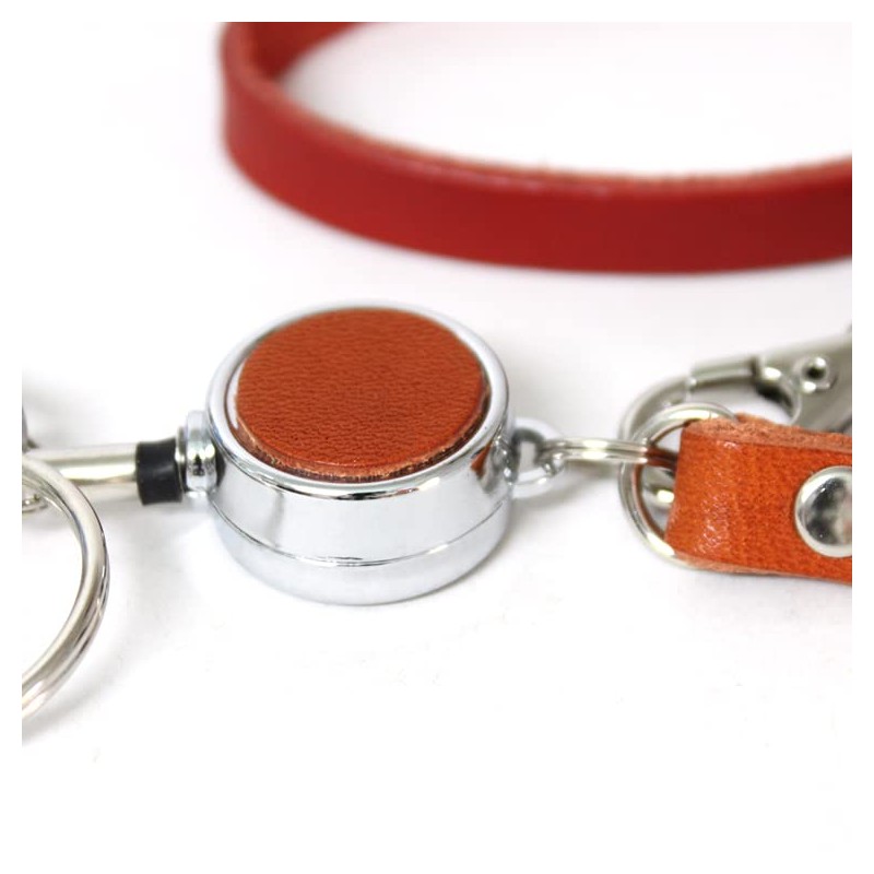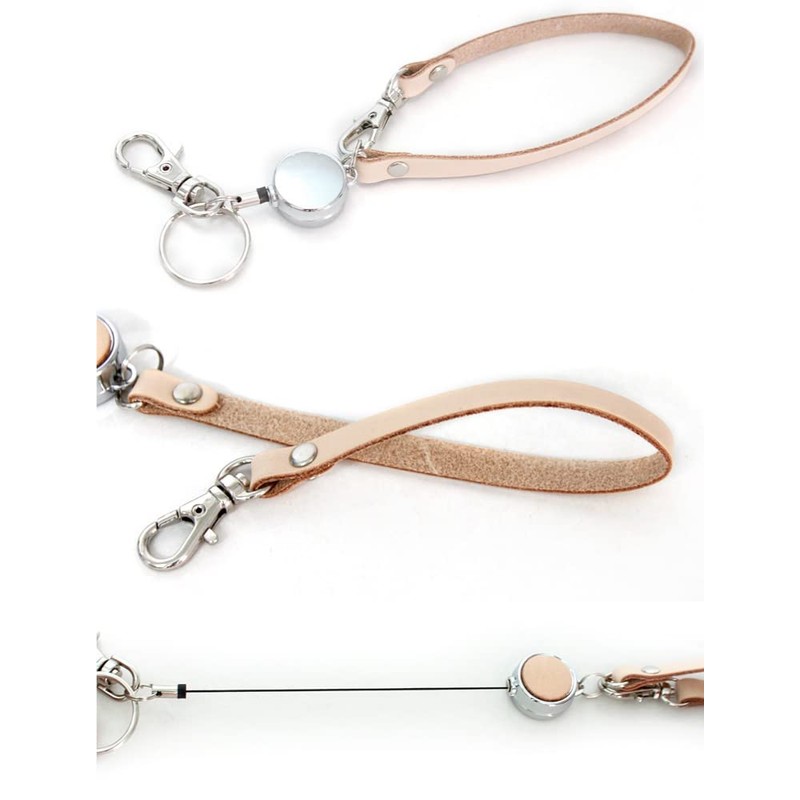 Genuine Leather Reel Strap Made in Japan | Tochigi Leather, Himeji Leather Nume | Stretchable Key Chain Approx. 13.8 inches (35 cm), Braun