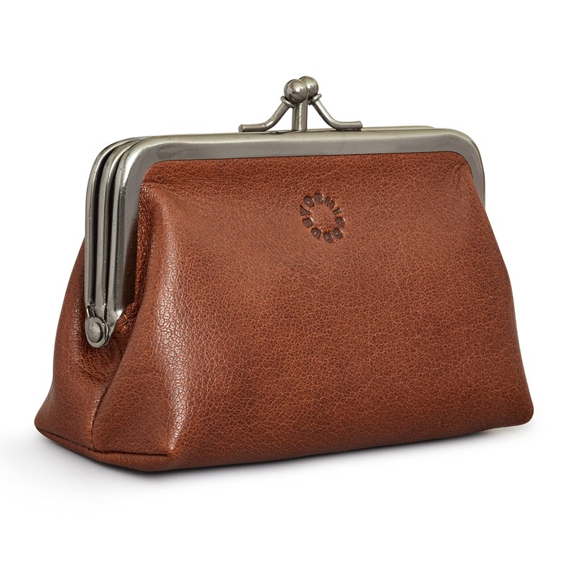 - OUTSIDE FEATURES: This leather purse for women features a metal frame with a clip top fastening that is finished in a gunmetal grey colour