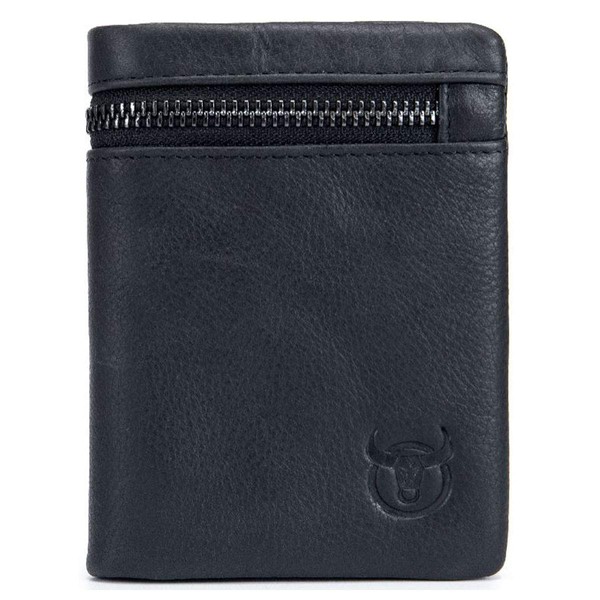 Genuine Leather Wallet for Men, RFID Blocking Antimagnetic Credit Card Holder, Zipper Coin Purse (Black)