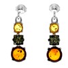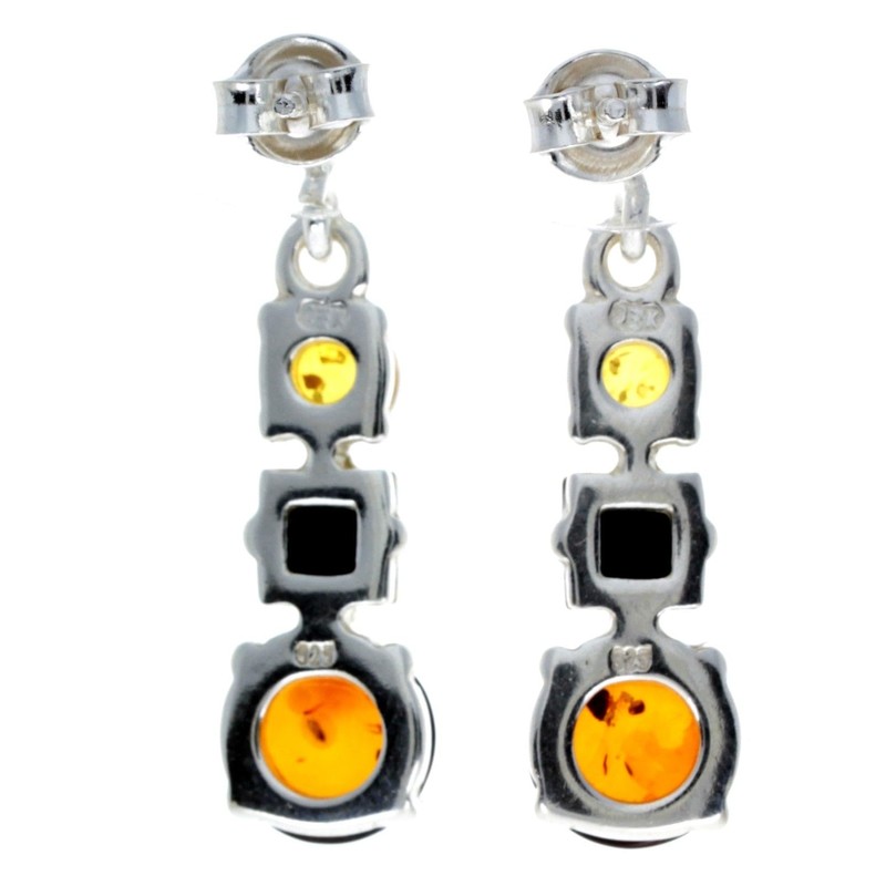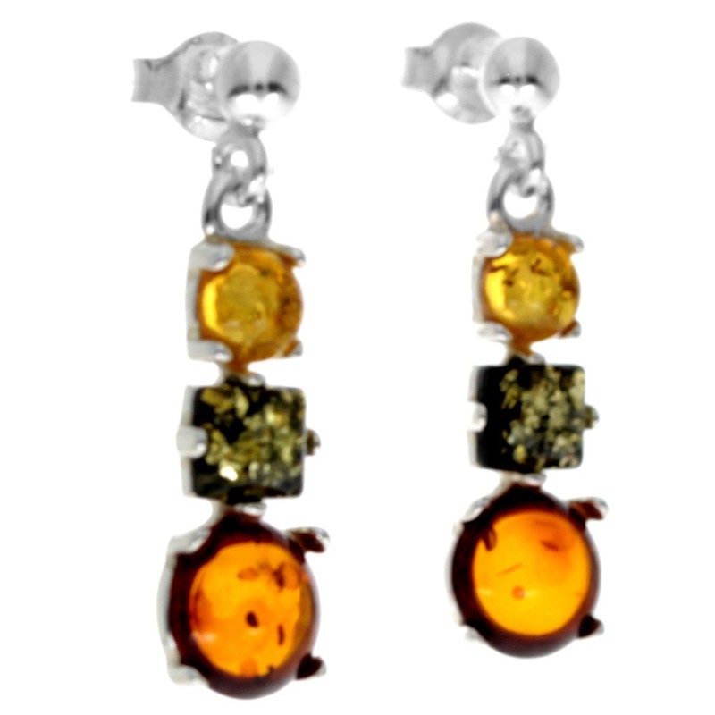 Genuine Mix Baltic Amber set in 925 Sterling Silver Multi (3) Stone Drop Studs Earrings - AA012M