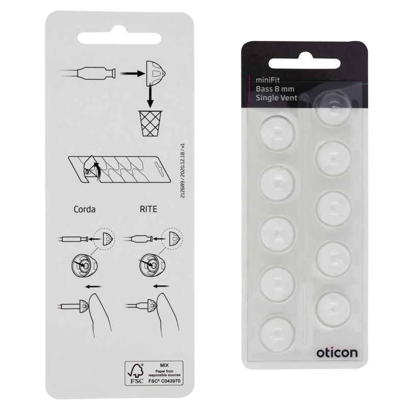 - 8MM DOMES FOR SMALL AND MEDIUM EAR CANALS - Oticon Minifit Bass 8mm (0,31 inches) Single Vent Domes are designed for small and medium ear canals, the 8mm Single Vent Domes cater to individuals with moderate to severe hearing loss.Single vent style allows for enhanced bass amplification and reduced feedback, ensuring a superior auditory experience.