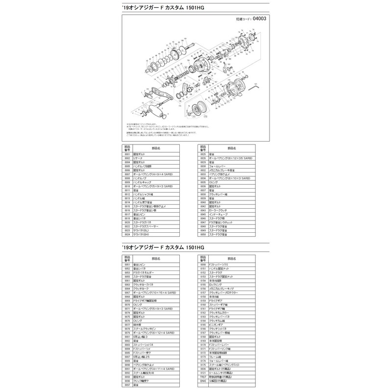 Genuine Parts 19 Oshiajigar F Custom 1501HG Spool Pair (with Bearings) Part No 13GUV