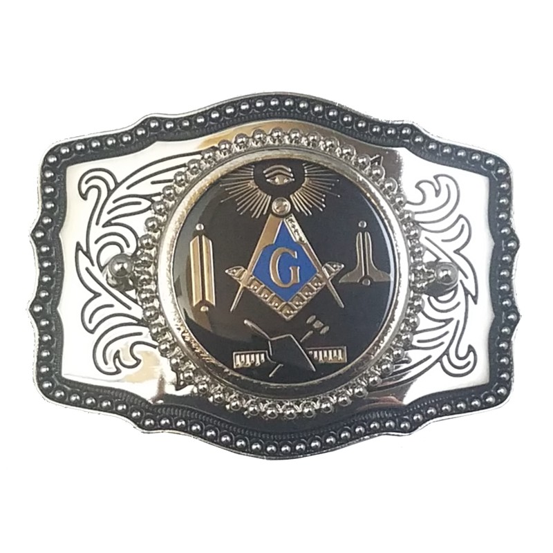 GENUINE TEXAS BRAND Silver Working Tools Square and Compasses Masonic Belt Buckle Made in USA