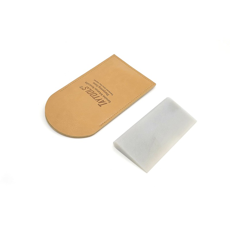 Genuine Translucent (Extra Fine) Arkansas Novaculite Slip Stone Sharpening Stone 4" x 2" Tapers from 3/8” to 1/8” " Imitation Leather Pouch (Translucent (Extra Fine))
