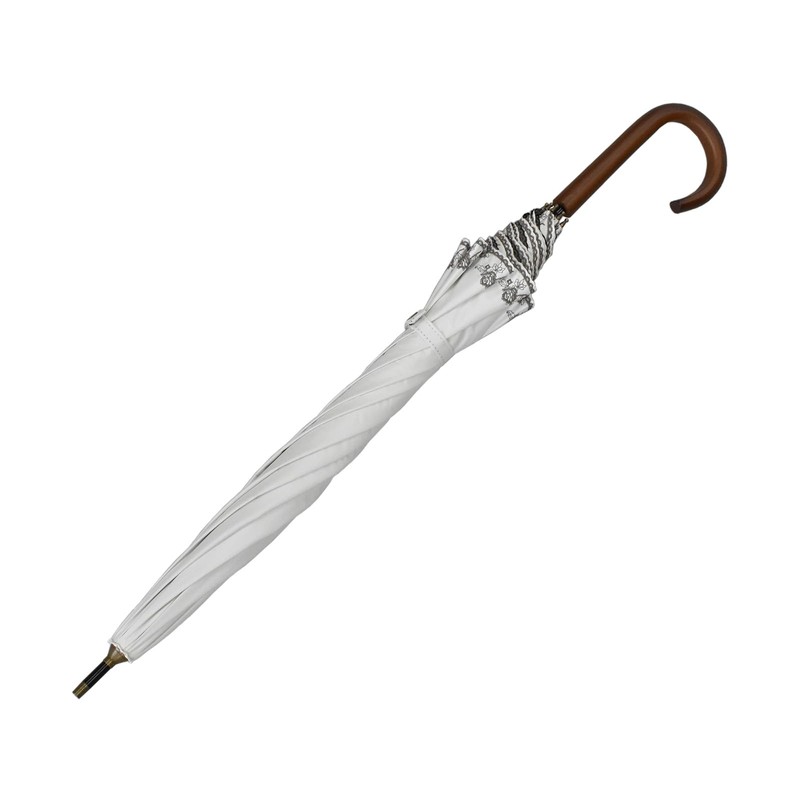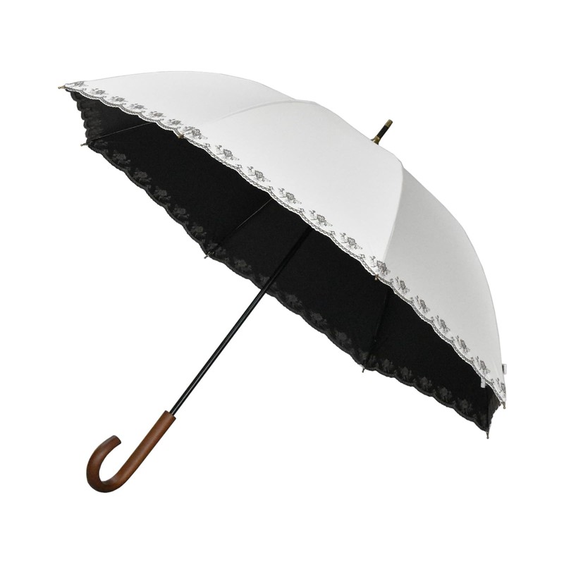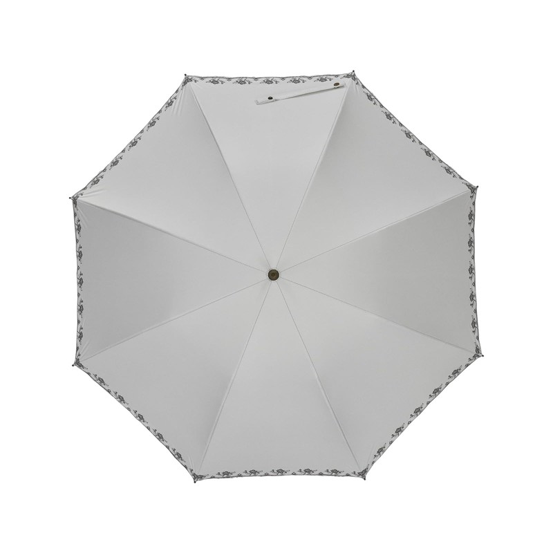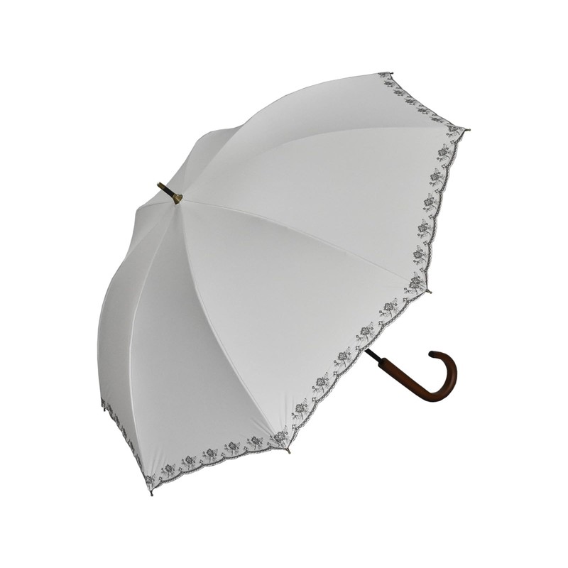 GENUINE UMBRELLA WORKS 桜骨の傘【レディース晴雨兼用長傘 UVカット率99%以上 遮光率99%以上】ローズ刺繍 47cmサクラ受骨/ショート手開き傘《UVブラックコーティング グラスファイバー骨》 (オフホワイト)