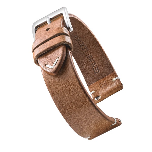 Genuine Vintage Leather Watch Band with Quick Release Spring Bars - Tan - 22mm