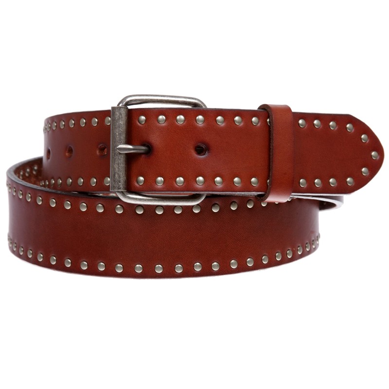 Genuine Vintage Retro Circle Studded Leather Belt - Interchangeable buckle, tan/silver | 38"