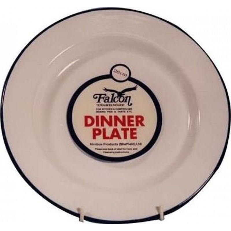 Genware 45026 Enamel Wide Rim Plate, 26 cm, White/Blue