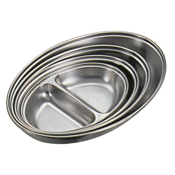 Genware NEV-12562 Vegetable Dish, Stainless Steel, 2 Division Oval, 14", Width 21.2 cm