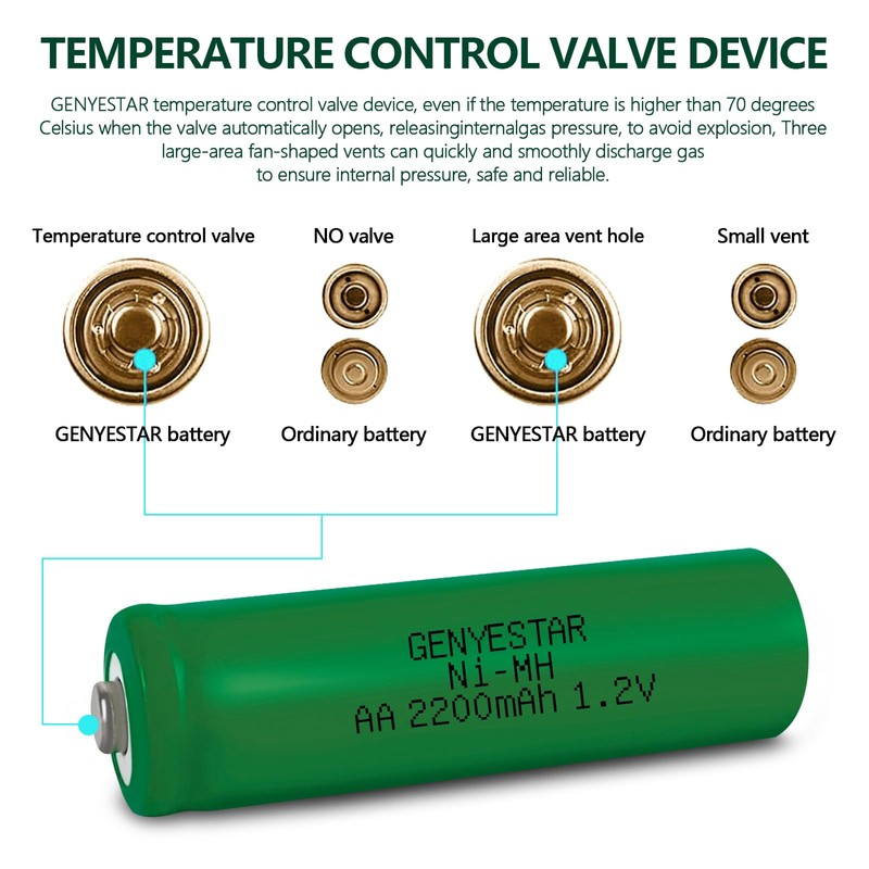 - 【Widely use and long lasting power】2200mAh rechargeable AA nimh batteries can be, smart home devices, digital cameras, remote controls, handheld games, key board, mouse, toys, health product, battery operated chandelier, sensor, string lights and other devices need AA battery. Do not need to change the battery frequently and have a longer battery life.