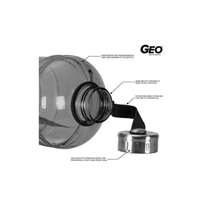 Geo Sports Bottles 1/2 Gallon (64 oz.) BPA Free Plastic Water Bottle w/ 48mm Steel Cap (Black)