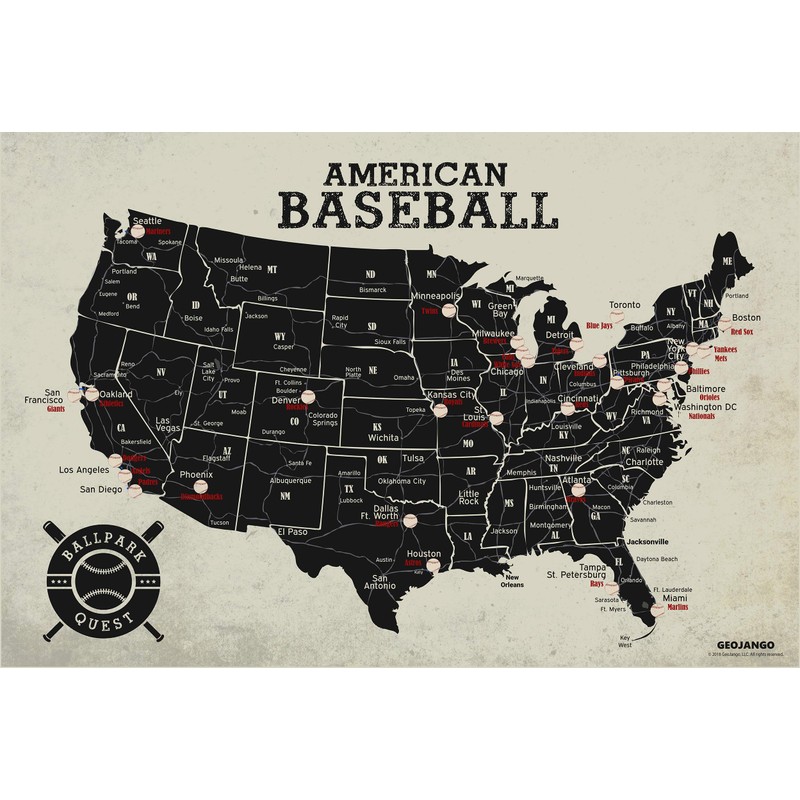 GEOJANGO Baseball Stadium Map Poster - Vintage Edition (30Wx20H inches)