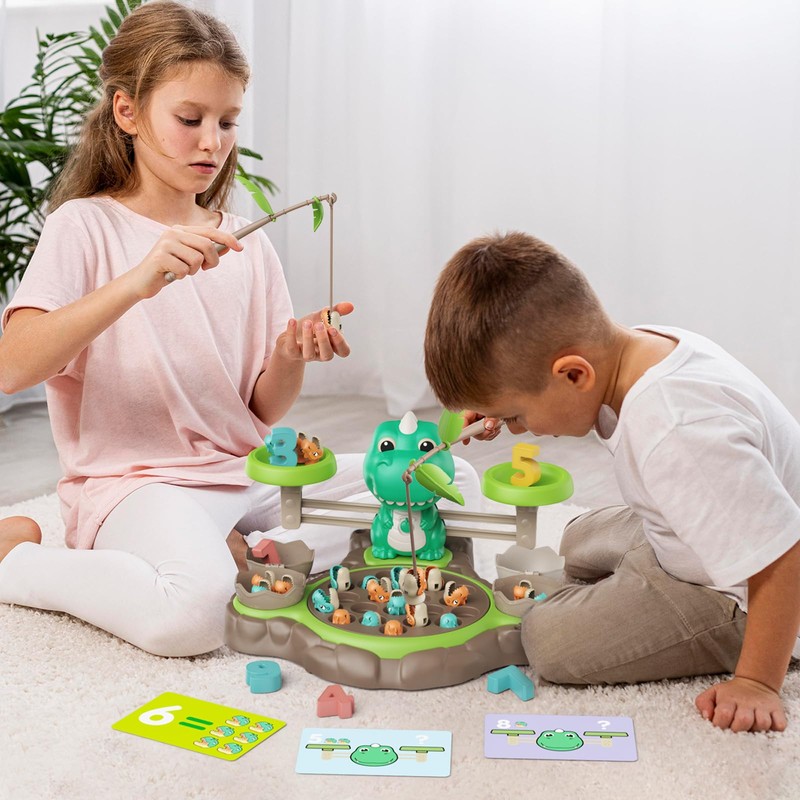 - [EDUCATIONAL FUN]: This dinosaur fishing and balance toy brings family members together, creating precious moments of learning and play. Through hands-on activities like balancing weights and counting dinosaurs, children build foundational math skills while parents can join in to guide and encourage. It’s a wonderful way to turn family time into an engaging educational experience, fostering a love for learning in a playful, supportive environment