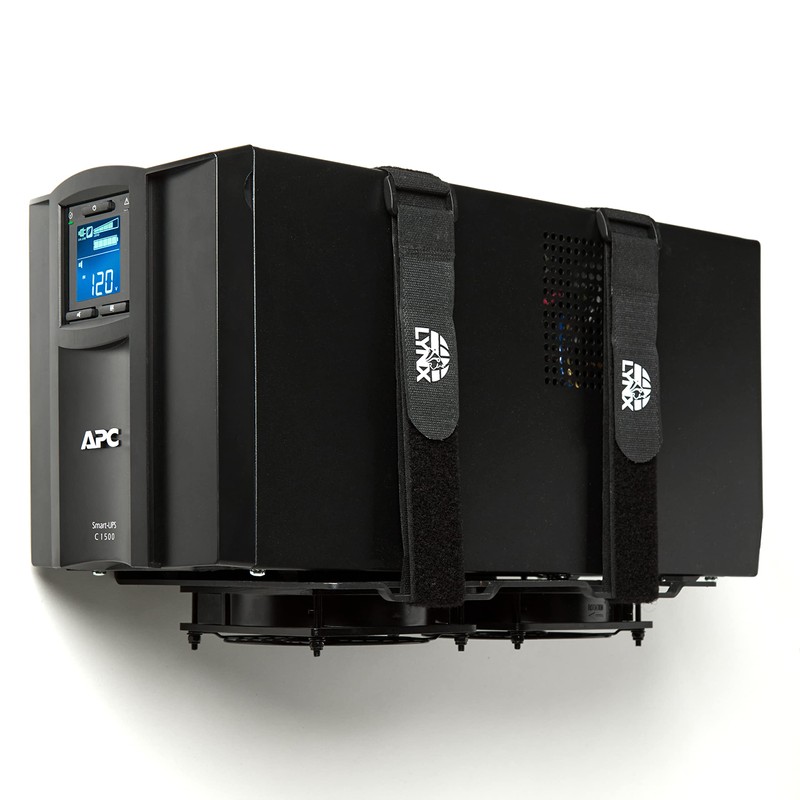 GEOLYNX Wall Mount | Vented Computer UPS NAS Server Workstation Uninterruptible Power Supply Wall Bracket Kit with Hardware & Straps + 120mm Case Fan Attachment Points (Fans Not Included) (Medium)
