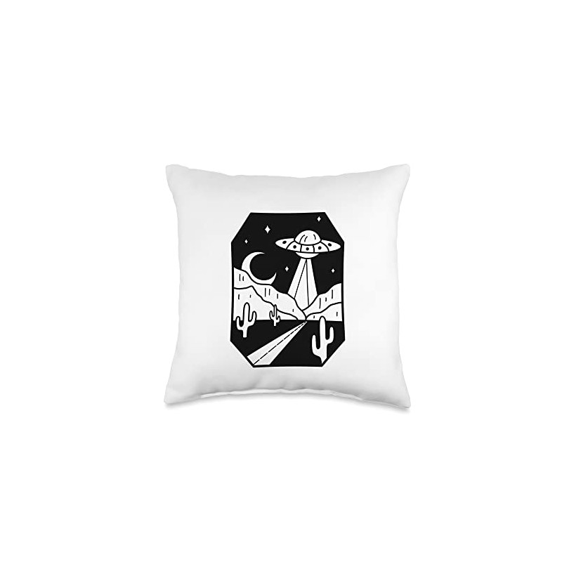 Geometric Desert Highway UFO and Moon Throw Pillow