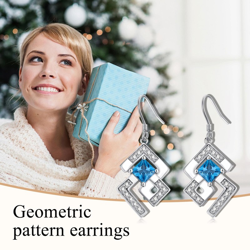 Geometric Earrings for Women 925 Sterling Silver Geometric Dangle Earrings Cubic Zirconia Geometric Jewelry Gifts for Girls Mom, Sterling Silver, Cubic Zirconia