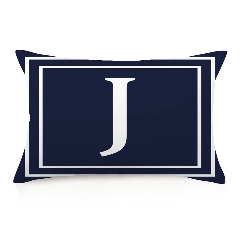 Geometric Pattern Monogram Decorative Lumbar Pillow Covers Letter J Navy Blue Monogram Throw Pillowcase Cushion Cover for Couch Sofa Car Chair 12 X 20 Inch