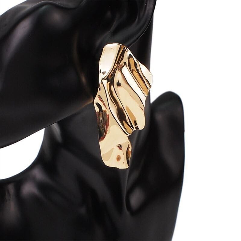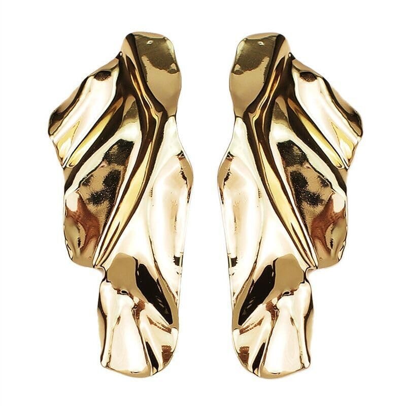 Geometric Texture 3D Large Metal Simple Modern Ripple Crumpled Earrings Irregular Exaggerated Sequins Minimalism Simple Earrings Rectangle Large Leaf Trendy Jewley Gifts-D Gold