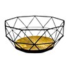 Geometric Wire Fruit Bowl with Wooden Base, Black Metal Frame, 30 x 20 x 14 cm