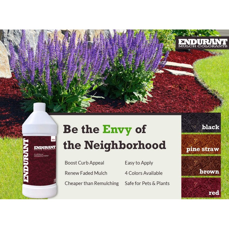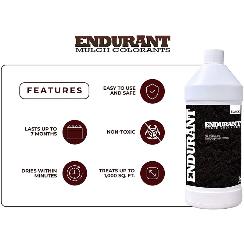- ENHANCE CURB APPEAL in seconds with our liquid mulch colorant. Applied with a pump sprayer, Endurant lets you refresh or change your landscape without the back-breaking labor of laying down new mulch.