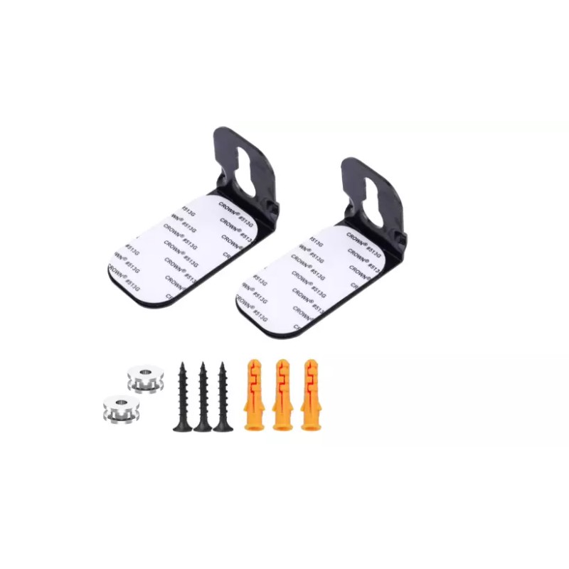 Package Includes: 2 x Wall Mount Bracket, 2x Metal Ring, 3 x Long Screw, 3 x Anchor, 2 x Sticky Anti-slip Strips ( Already installed it on the bracket )