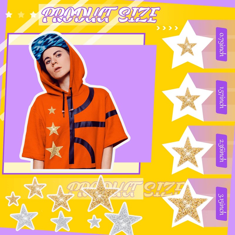 - Ideal DIY Crafts Accessories: the gold and silver star patches contain classic colors, easy to match with different colors and styles of clothes, suitable for DIY ironing on clothes, handmade bags, hats or other art projects, allowing you to apply them to your clothing and other accessories, to make your items charming and bling