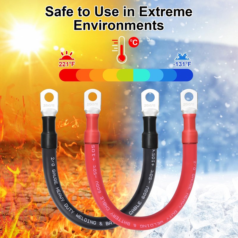 - Easy Installation: Both ends of each cable have been pre-installed with 2/0AWG 3/8" battery lugs and 3:1 heat shrink tubing, which is thicker and stronger than the 2:1 shrink tubing, users can easily complete the installation of the battery cables without the need for professional tools, suitable for DIY projects.