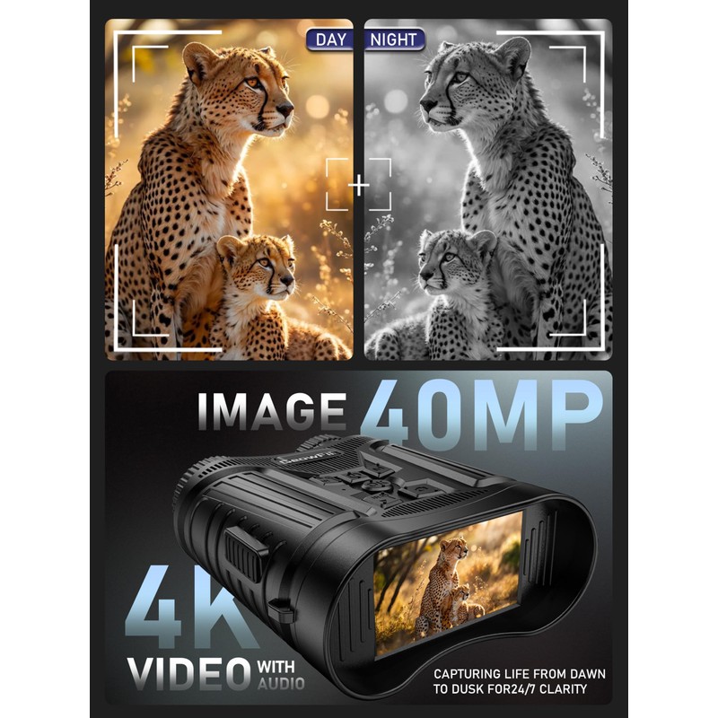 - 4K Video & 40M Image —— GeowFiiTech Night Vision Goggles deliver Clear 4K Video & 40M Image with dual-light sensing tech. Whether capturing midnight wildlife or dawn hunts, our 3-in-1 recording system (photo/video/playback) ensures razor-sharp memories