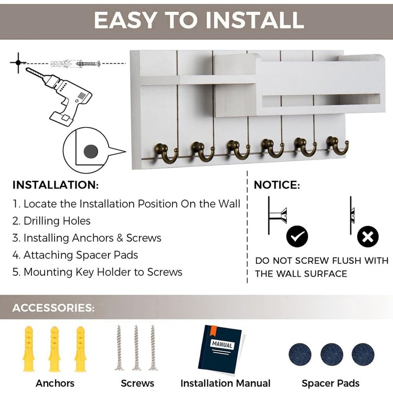 - Natural wood --- Key holder is made of natural wood, with a hard and robust texture, clear grain, safe and healthy design and creates a warm atmosphere for your home.