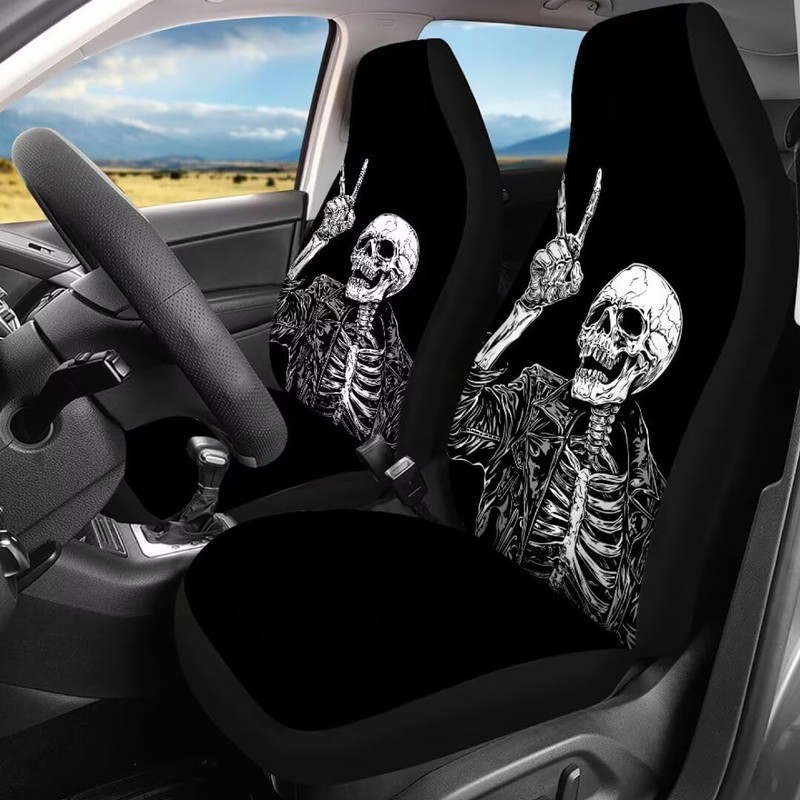 GePrint Skull Print Car Seat Covers Full Set Universal Car Interior Accessories for Sedan Cars Van Trucks Easy to Install Automotive Front Seat and Rear Bench Covers for All Season Gift for Holiday