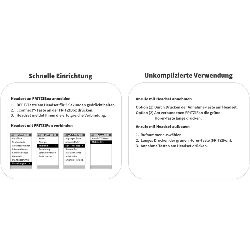 - Headset is simply registered by pressing two buttons on your FRITZ!Box. Then the headset is connected to your FRITZ!Fon.