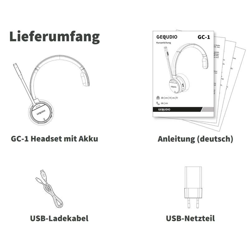 GEQUDIO GC-1 DECT Headset for FritzBox - Wireless Calling with Call Control on FritzFon - Dual Headset with Bluetooth for PC and Smartphone - HD Audio (1-Ear)
