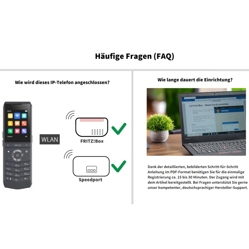 - Instructions as a PDF (English language not guaranteed): you will receive access to our illustrated step-by-step instructions so that you can insert the phone immediately. Just plug it in and go. 24 months warranty.