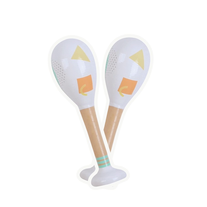 - Set of 2 wooden maracas shakers, the toy in one set sold together by random colour and pattern.