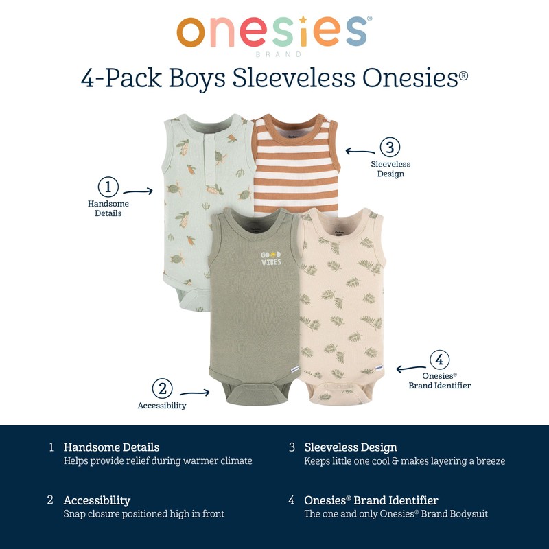 Gerber Baby Boy's Multi-Pack Sleeveless Onesies Bodysuit, Sea Turtles