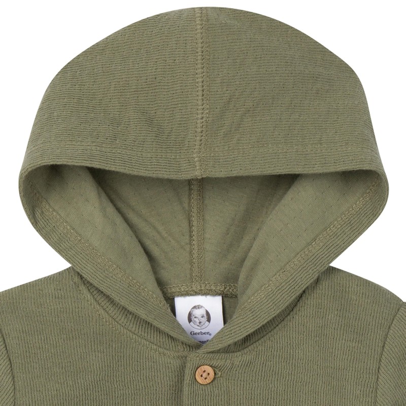 Gerber Baby Boys' Hooded Romper, Olive, 18 Months