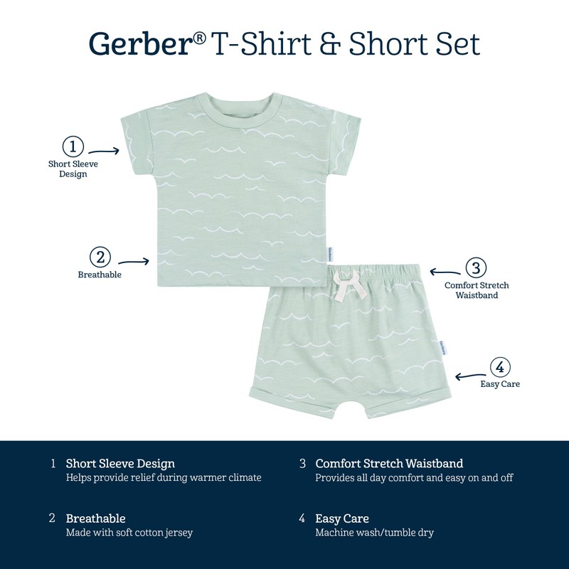 Gerber Baby Boys T-Shirt and Shorts Set, Waves, 18 Months