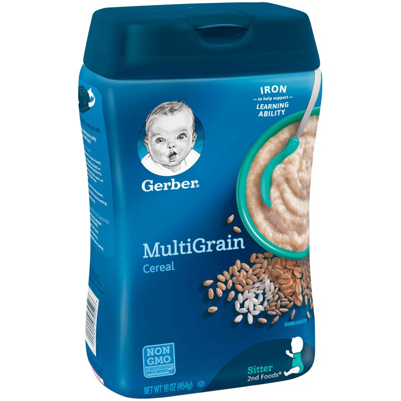 Once your little one has mastered Gerber Single Grain cereals give Gerber Multigrain baby cereal a try! It helps expose babies to new tastes while providing essential nutrition. It has iron to help support learning ability - just 2 servings of baby cereal a day has 90% of your baby's daily value of iron. It also has Vitamin C and 6 B Vitamins for healthy growth and Calcium to help build healthy bones and teeth.
