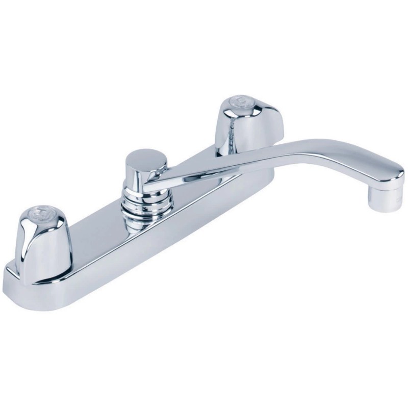 Item DescriptionTrust you will get outstanding performance at great value from Gerber's Classics faucets. Ideal for new or replacement installations, this Two Handle Cover Plate Mounted Kitchen Faucet is ready to install to tackle any cleaning job. ADA-compliant blade handles incorporate compression cartridges to provide effortless functionality and drip-free operation. A 1.75 gpm flow rate conserves water without compromising performance. finish is easy to wipe clean and resists corrosion. This sink faucet includes all mounting hardware for complete installation.