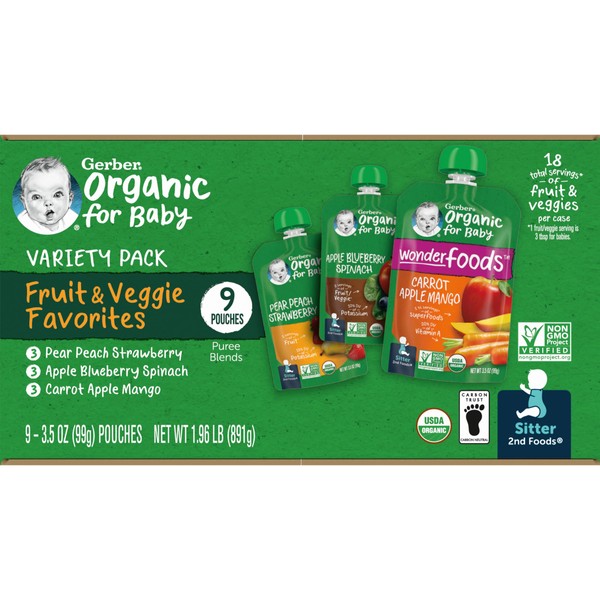 Gerber Organic Pouches Value Pack, 3.5 oz Pouch (9 Pack)