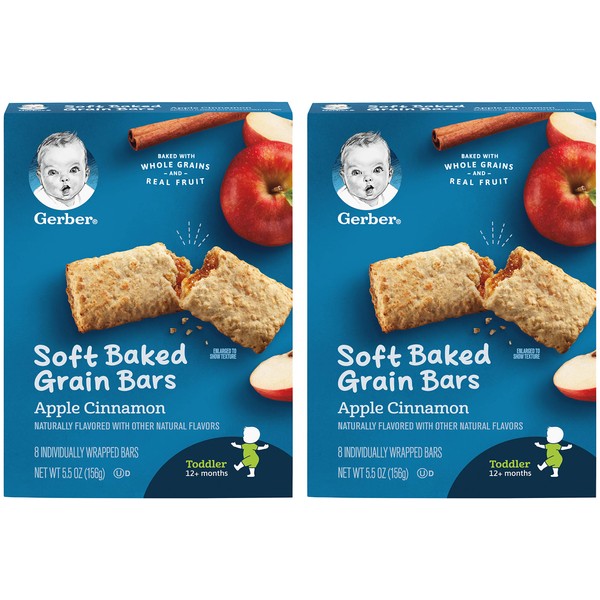 Gerber Soft Baked Grain Bars, Apple Cinnamon, 8 Individually Wrapped Bars/Box (Pack of 2)