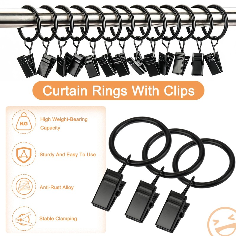 - 【HIGH-QUALITY METAL CONSTRUCTION】Theseblack curtain rings with clips are long-lasting and rustproof, ensuring long-lasting performance. Each black curtain clips can hold up to 3.3 pounds/1.5kg, providing a reliable and sturdy solution for your heavy drapes.