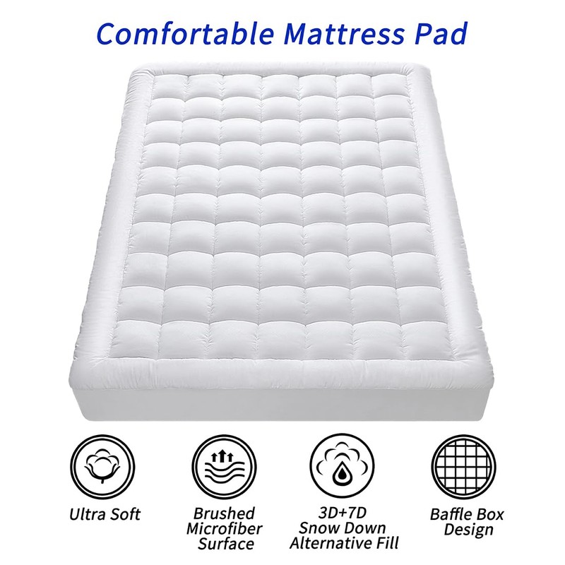 - SOFT and COMFORT - Our mattress pad is designed to enhance your sleeping experience with its plush and comfortable quilted surface. The plush, fluffy texture cradles your body, ensuring a restful night’s sleep, while its breathable materials allow for optimal airflow, keeping you cool throughout the night.