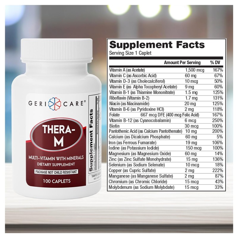 GeriCare Thera High Potency Multivitamin with Minerals, Nutritional Supplement Caplets, 100 Count (Pack of 2)