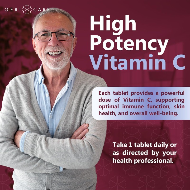 GeriCare Vitamin C 1000 mg – High Potency 100 Tablets – Supports Immune Function, Enhances Skin Care with Collagen Production, Aids in Iron Absorption, and Vascular System Health