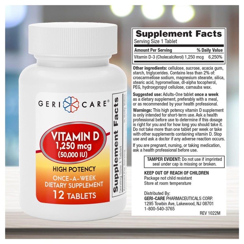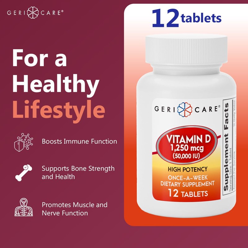 GeriCare Vitamin D 1,250mcg (50,000 IU) High Potency Once-A-Week Dietary Supplement, 12 Count (Pack of 1)
